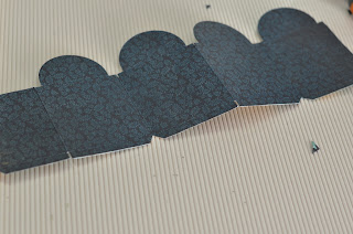 Once folded it should look like this, all the scored line parallel to each other. I like to use My Mind's eye papers for projects like this one as they offer just the right amount of thickness for scoring, folding and gluing.